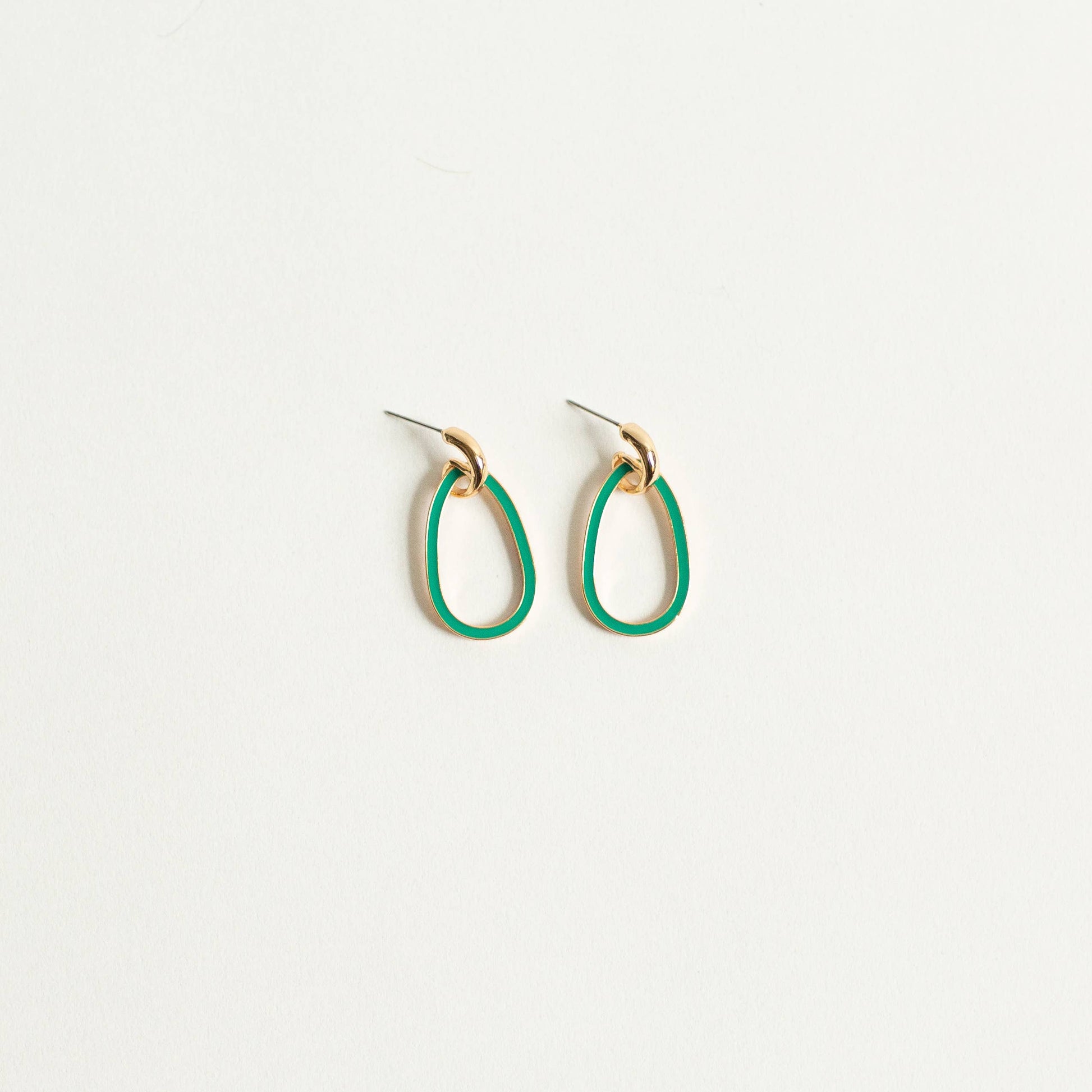 The long oval Ava earring is a fun and light weight earring. Available in white or emerald with gold-tone accents.