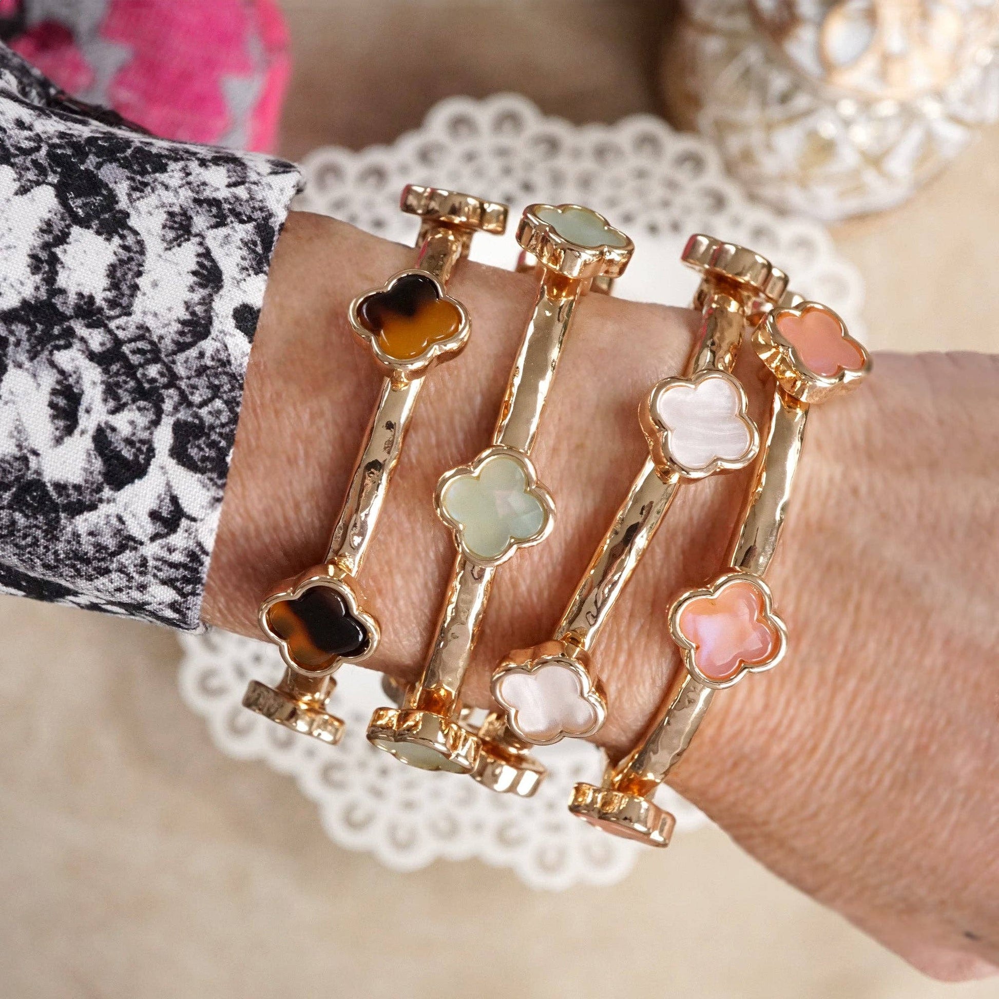 Clover Stretchy Bangle Bracelet – White, Pink, Mint, Tortoise