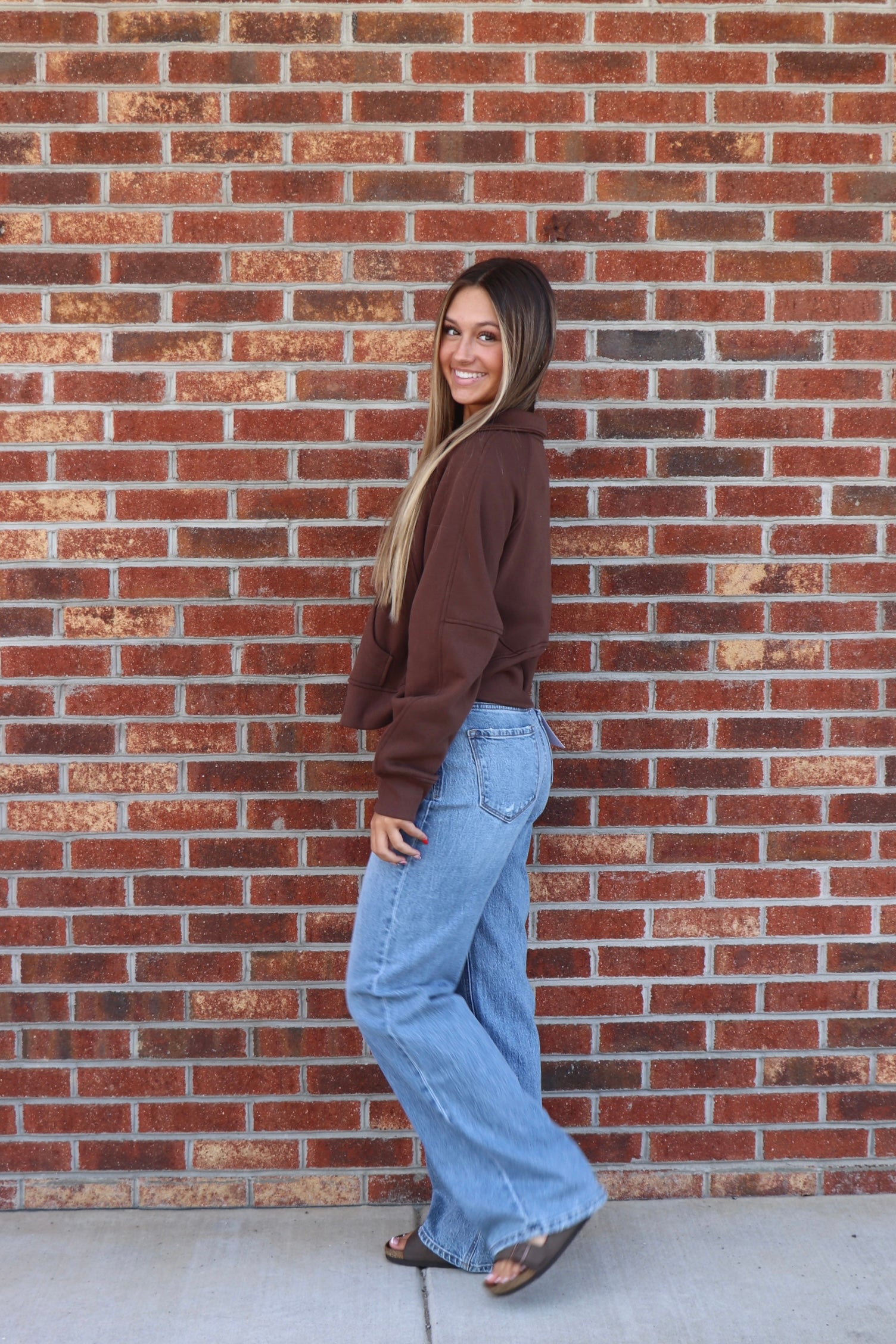 Wrap yourself in comfort with the Kanga Sweatshirt in Brown! This fleece half-zip is the perfect mix of cozy and cool, complete with a big kangaroo pocket to keep your hands warm or stash your essentials. Its soft, snuggly fabric and easygoing style make it your new best friend for everything from lazy mornings to spontaneous adventures. Get ready to zip into fun and warmth all day long!