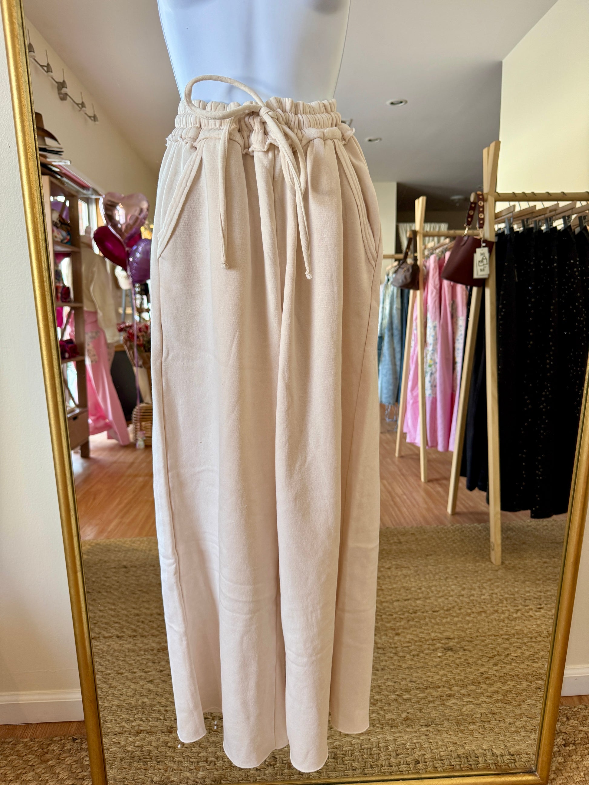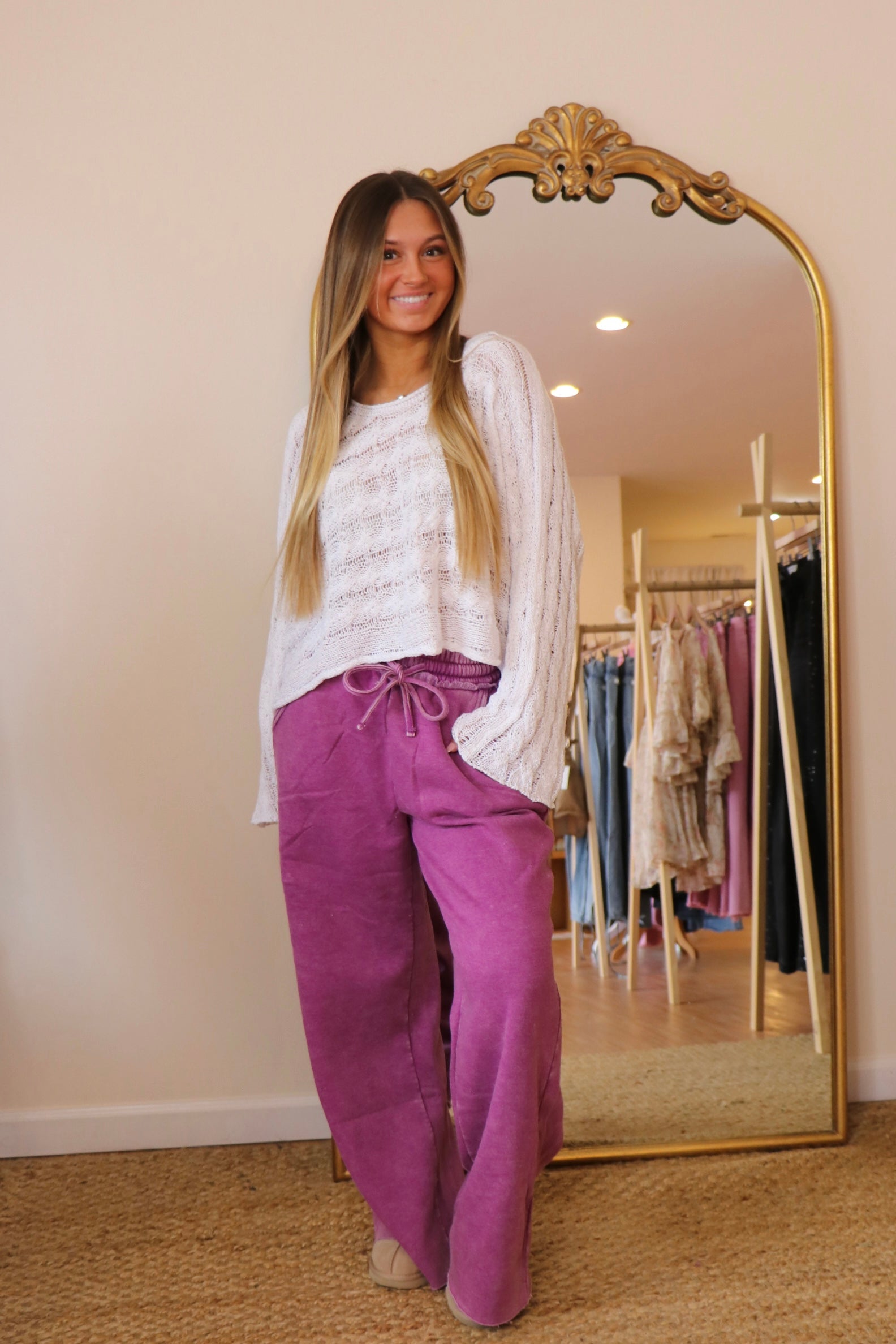 Experience ultimate comfort and style with the Next To You Pants. These acid wash fleece palazzo sweatpants feature a drawstring band waist for a perfect fit, convenient pockets to keep essentials close, and a trendy raw hem for a laid-back look. Perfect for lounging or casual outings, they combine softness and fashion effortlessly.