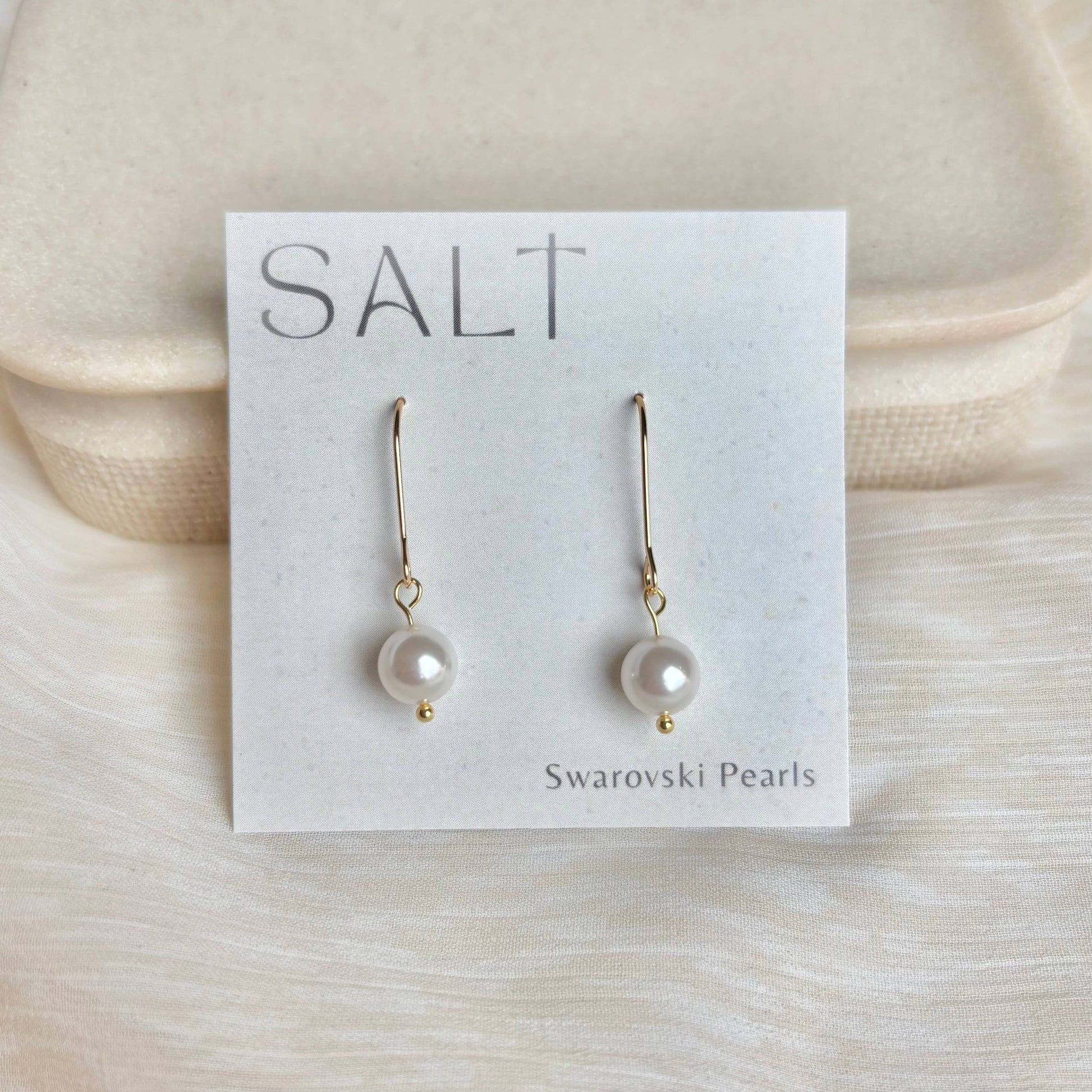 These Swarovski pearls are lustrous & beautiful! They are a dreamy ivory color, perfectly complemented by 18k gold coated hardware - chic, elongated hooks. Pearls have been everywhere lately, and we are here for it! They are timeless and can be dressed up or down. ANTI-TARNISH 18k GOLD -Hooks - brass, coated in 18k gold. -Our gold coating is wonderfully thick & durable for long term wear. SAFE FOR SENSITIVE SKIN -18k Gold is free of nickel, lead, & metals that irritate the skin. -Will not turn skin green. -Lightweight & comfortable on the ears.