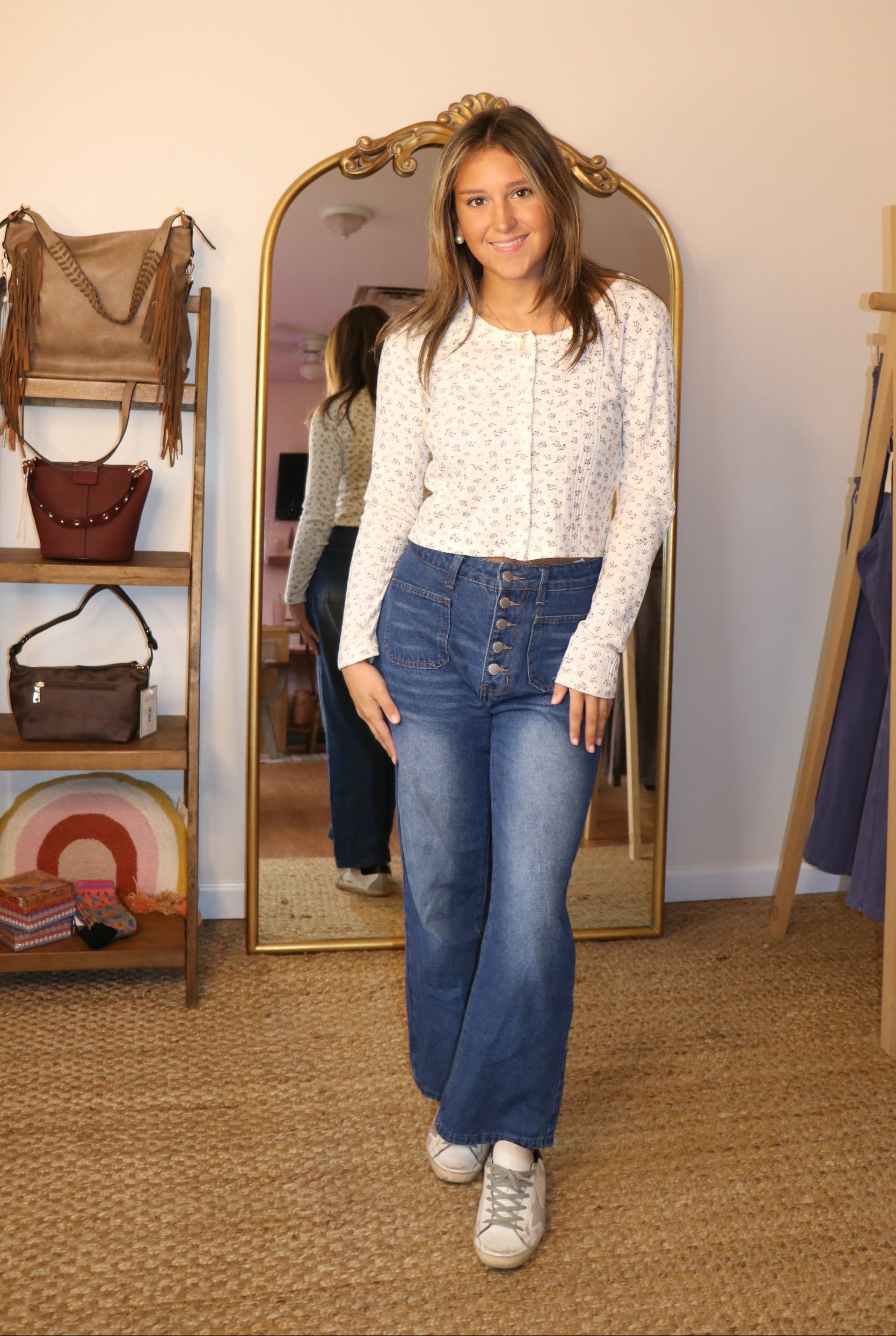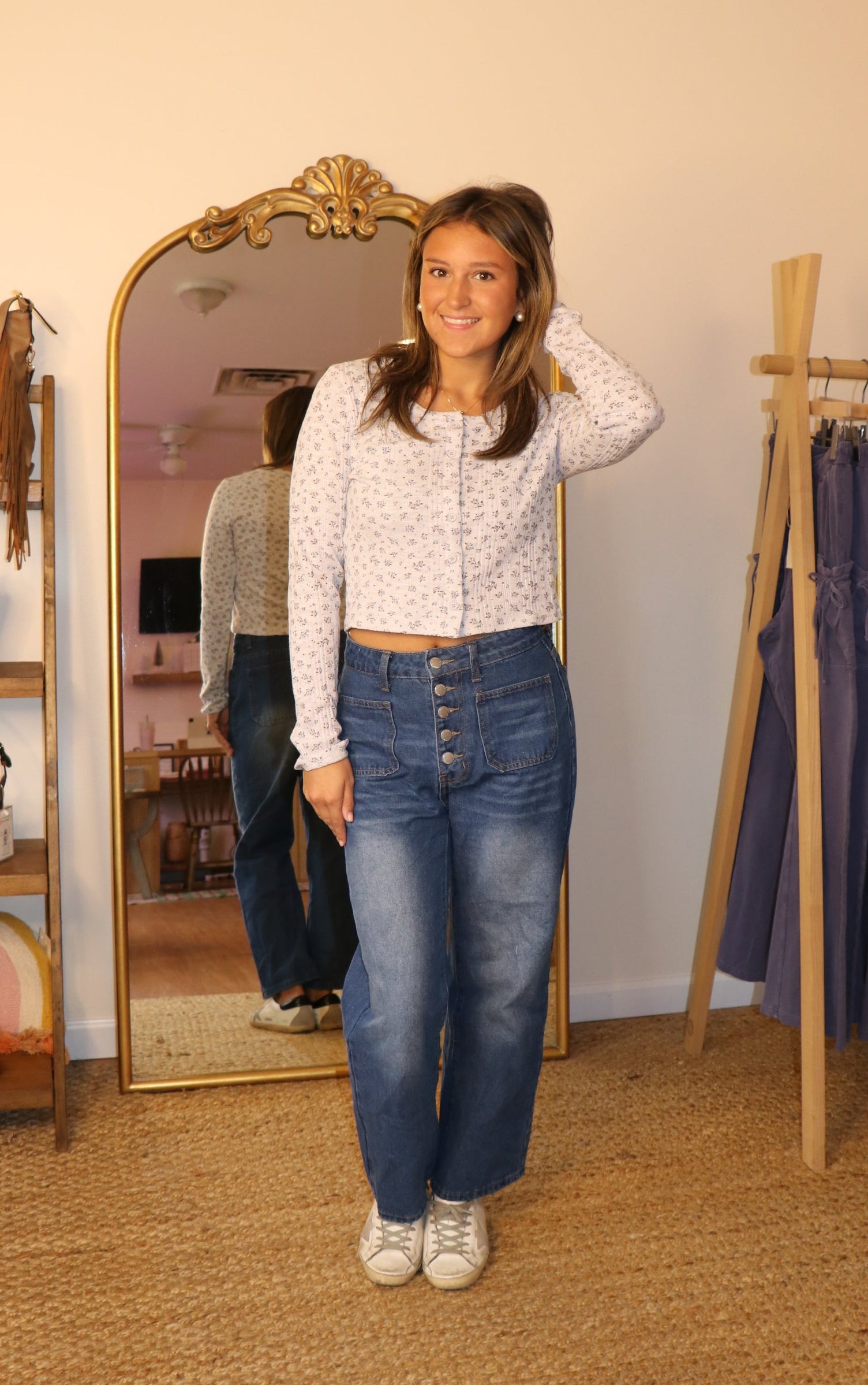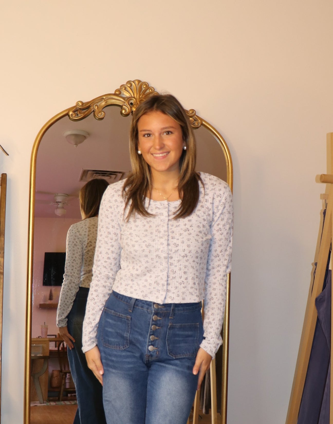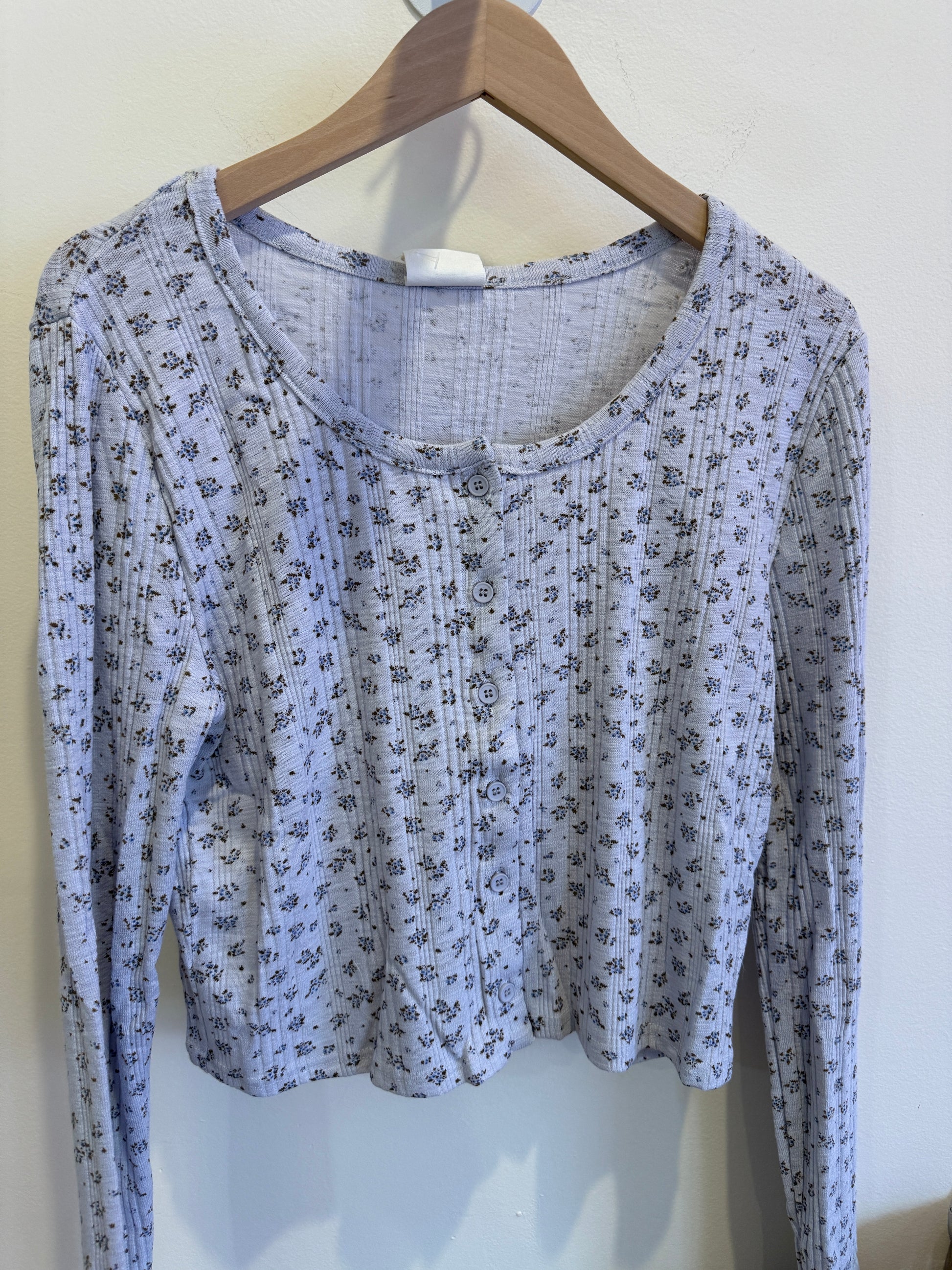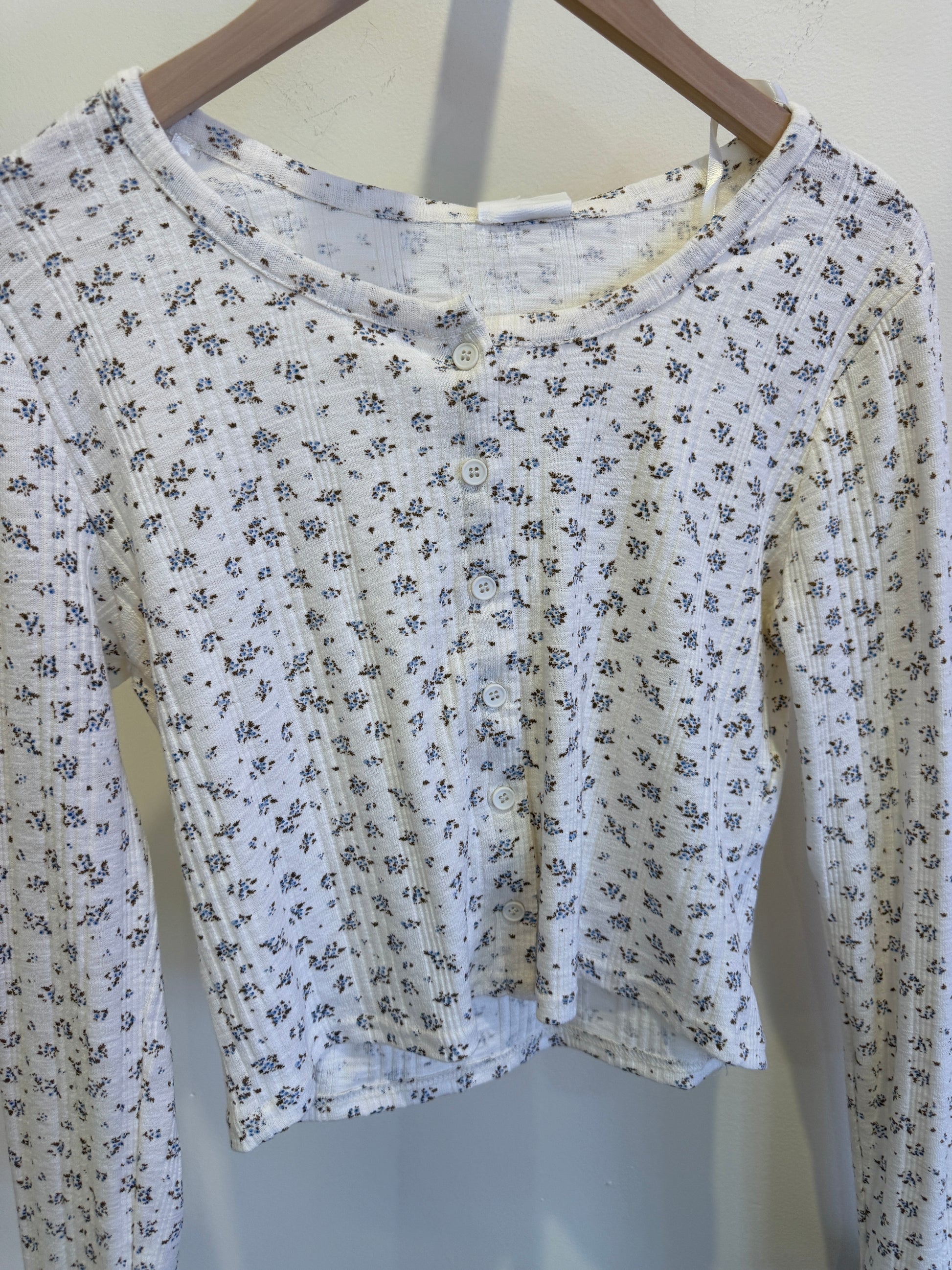 Elevate your everyday wardrobe with this charming knit cardigan top, featuring an enchanting floral and bow print that adds refined elegance to any ensemble. The long sleeves and classic round neckline create a polished silhouette, while the button-down front offers effortless styling versatility. Perfect for layering over basics or wearing solo, this piece seamlessly transitions from casual afternoons to more refined occasions with understated sophistication.